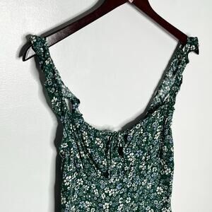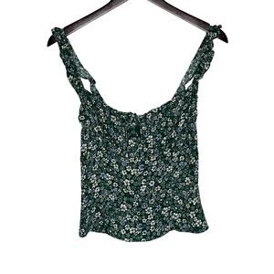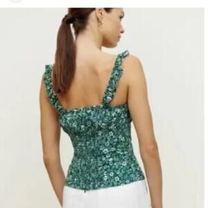 Reformation Cortese Top Women 6 Green Ditsy Floral Ruffle Strap Smocked Feminine