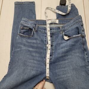 Stylish Reformation "Cory" high rise skinny jeans! Button fly front with no pockets on the back. Jeans have some wear/ pilling on the seat and a wear spot inside thigh on the inseam (Its only through one layer so its not a hole. Last pic). Size 29