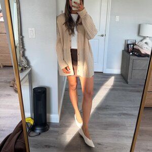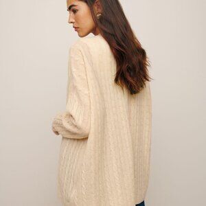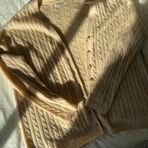 Cozy cable knit cardigan. Button-up front. Long sleeves. Perfect for layering.