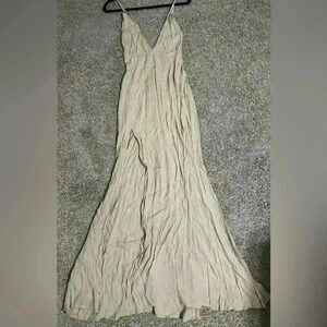 Elegant cream maxi dress by Reformation. Features a flowing silhouette and V-neckline.