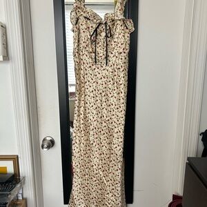 Reformation Cream Midi Dress with Red Floral Pattern- Erdam