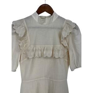 Elegant mini dress with ruffle details. Puff sleeves add charm. Perfect for any occasion.