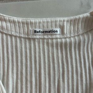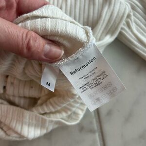 Reformation Cream Ribbed V‑Neck Button‑Front Top