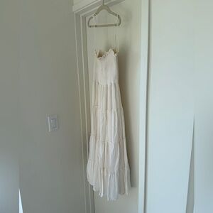 ✨Reformation NIRA cream midi dress✨ - Excellent condition. Worn twice! ruffled neckline and ties on shoulders. Very faint discoloration on top that may wash out. See detail in photos