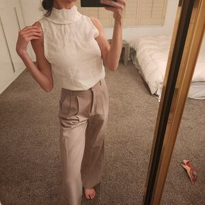 reformation silk white cream blouse sleeveless Collared airy summer party professional meeting work