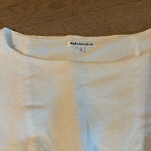 Chic cream tank top by Reformation. Sleeveless design. Perfect for versatile styling. White linen top. Zipper on side. Worn once super cute