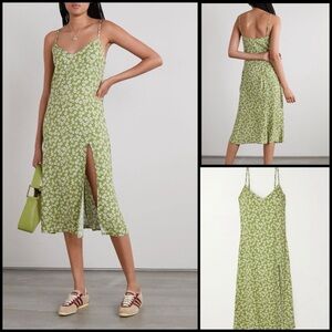 Reformation Crimini Dainty Floral-Print Crepe Midi High Slit Coquette Dress Sz 2