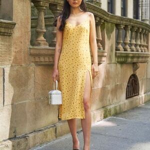 Reformation Crimini, Gwen Yellow Floral Print, Midi Slip Dress. Women's size 8. Excellent condition; No flaws!