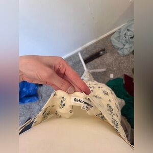 Size 6 Reformation Crimini Dress in Blaire Ivory. Slip dress in a tank top style, the side slit is a big higher because of a rip (pictured) but easily sewable or you can just leave it alone because it's in the same spot as the original slit. Good condition otherwise, super adorable.