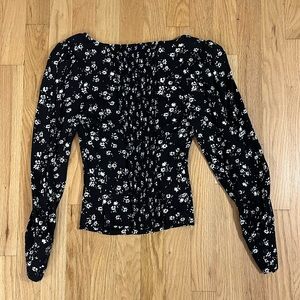Reformation Cropped Long Sleeve Floral Black Top Size 2