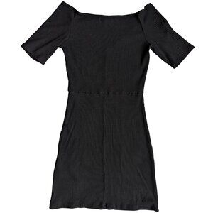 Reformation Cuba dress, a black ribbed bodycon mini dress with short sleeves and v-neck. Comfortable and stretchy. Size small.