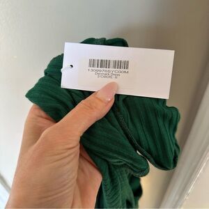 Reformation Cutout Denmark Mini Dress in sycamore / Kelly green color. We've been busy shortening dresses. The Denmark is a long sleeve, mini length dress with a scoop neckline. It has a front cut-out detail and is fitted throughout to show off your figure.