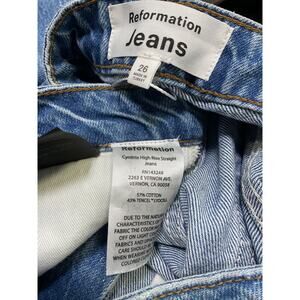 Reformation 'Cynthia' Blue Cotton High Rise Straight Jeans Size 26: fan-favorite denim silhouettes that’s high-rise and hugs you all over, made with non-stretch denim.