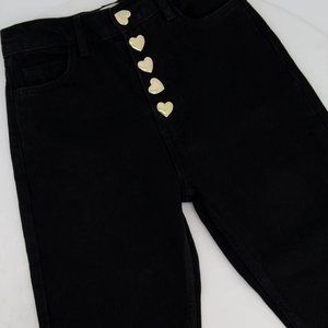 Reformation Cynthia Gold Heart Button High Rise Straight Black Jeans - brand new