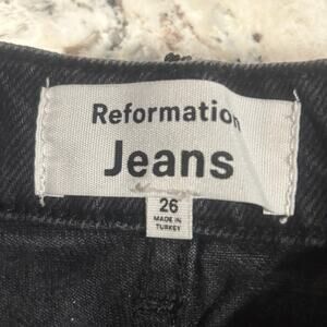 Reformation Cynthia High Rise Straight Jeans Destroyed Black Lagoon Size 26