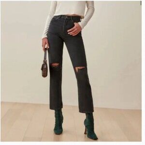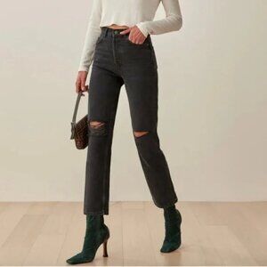 Reformation Cynthia High Rise Straight Jeans in Lagoon Destroyed