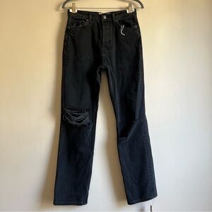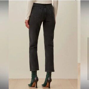 Beautiful "Cynthia High Rise Straight" jeans in a medium black wash (called "Lagoon Destroyed").