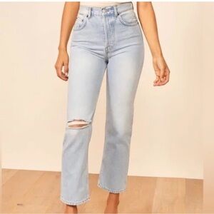 Reformation Cynthia High Rise Straight Leg Jeans in Tahoe Destroyed Size 28