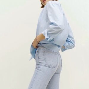 Reformation Cynthia High Rise Straight Rigid Denim Jean in Tahoe Light Blue, Size 25P.