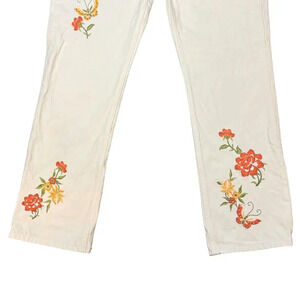 Reformation Cynthia High Rose Straight Leg Jeans Button Up Cream Denim Floral Embroidery Boho Hipster MSRP: $198