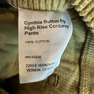 Reformation Cynthia button fly high rise corduroy straight leg pants