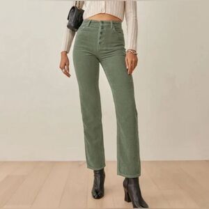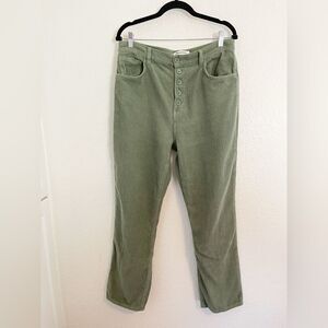 Reformation Cynthia button fly 100% organic cotton green baggy corduroy pant. 30