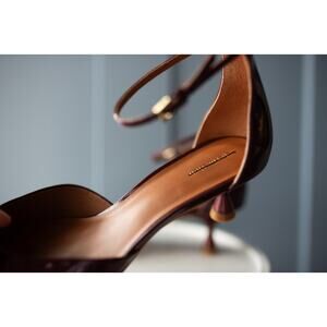 Reformation Darcy Bow Pumps 7.5 Anthropologie New with the box 7.5 US Red Brand tag marked inside shoes The Darcy Bow Pumps by Reformation feature a kitten heel with a square toe, adjustable ankle strap, and sweet bow detail. Leather upper, insole Rubber sole Kitten heel Buckle styling Heel Height: 2"