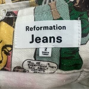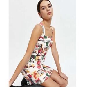 Reformation Davies Bustier Denim Mini Dress comic print sz 2