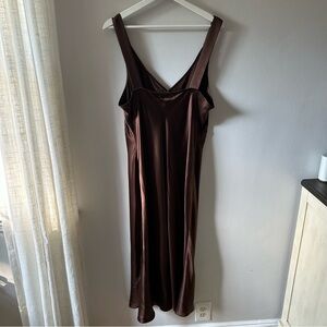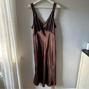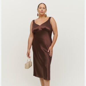 Reformation Daytona Silk Dress in Cafe Brown Sleeveless Midi