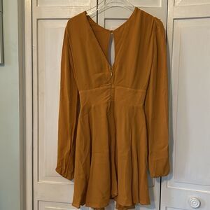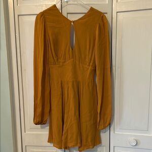 Reformation Delancey Goldenrod Mini Keyhole Dress - A-line, balloon sleeves. Amazing fall color, or transitional piece.