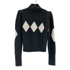 Reformation 'Diamond' Black Cashmere Turtleneck Size S: a cashmere turtleneck with puff sleeves, a relaxed fit throughout, long sleeves, measurements: 18.5 inch bust x 21 inch length.
