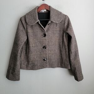 This is a deadstock woven outerwear fabric made with 67% Polyester, 33% Wool. Dry clean only.