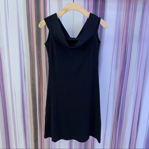 Reformation Black Ribbed Dress. Sleeveless. Cowl neck. Size XS
