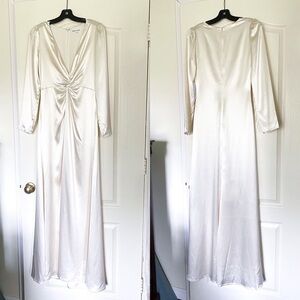 Reformation Dress Delphi Silk Slit Long-Sleeve Wedding Maxi Ivory 2 FLAW