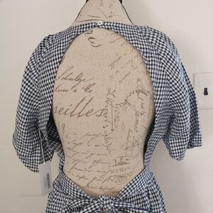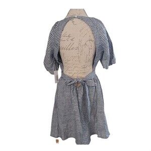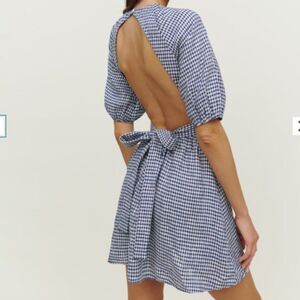 Reformation Dress Irwin Linen Challah Check Blue Women's Size 10 NWT