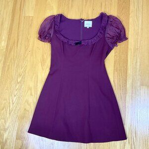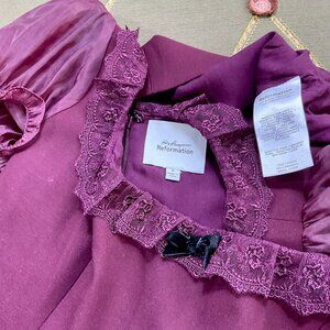 Reformation Dress Kacey Musgraves Babydoll Mini Burgundy Sheer Sleeves Bunny (6)