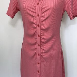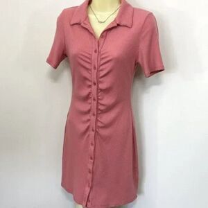Reformation Dress “Lennon” Mini Ribbed Button Down Pink NWOT Sz Sm