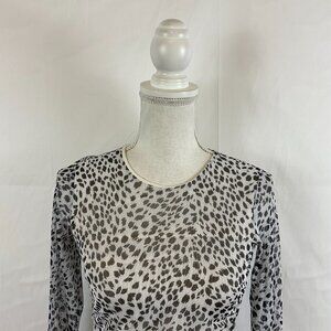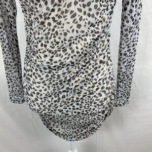 Reformation Dress S White Black Animal Print Net Sheer Long Sleeve Bodycon Ruched Sides