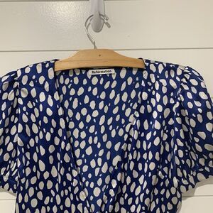 Reformation | Dress Silk Mini V Neck Wrap V Neck Short Sleeve Polka Dots- Large