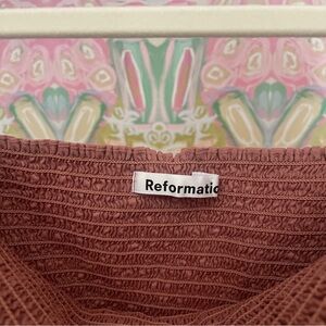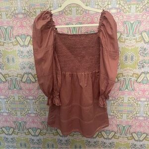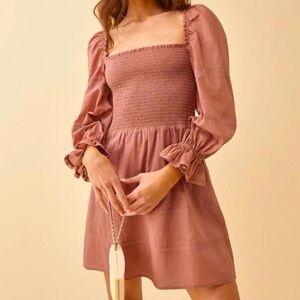 Reformation Dunes Smocked Long Sleeve Mini Dress Praline Pink Rose