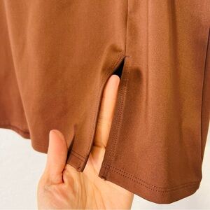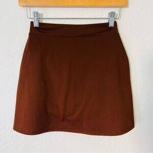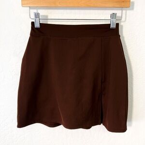 Let's get physical. The Nina is a mini length activewear skirt. It's fitted at the waist with a more relaxed fit throughout. It also has a slit at the front and built in shorts underneath so you can be extra flexible. Eco Move is a sleek performance fabric with a slight sheen for mid to high-impact activities.