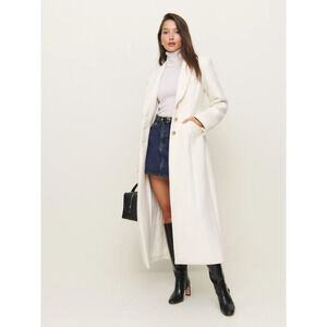 Reformation Eden Nipped Waist Coat in White. Size S / Small. Features slim fit, pockets, button cuffs, back slit, lined, rose gold hardware, button closure. 51% polyester, 49% wool. Style 1315900. Brand new, never worn, NWT / New with tags.