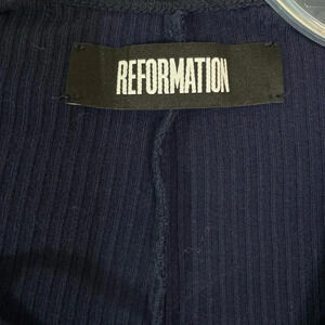 Reformation Edison Lace Up Rib Knit Midi Dress NAVY Blue Size XS