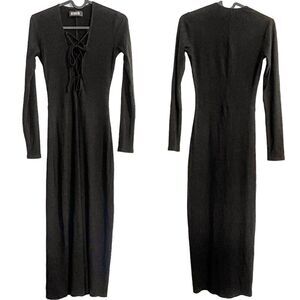 Reformation Edison Lace Up Ribbed Midi Dress Black