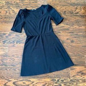 Reformation Elisha Mini Dress Puff Sleeve Scoop Neck A-Line in Black Size Small