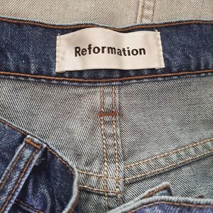 Reformation Ella Jean Mini Skirt Women's Blue Color Block Manufacturer Distress Zip Fly Sz 30