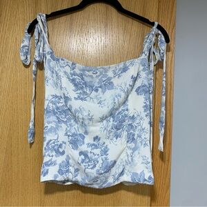 Lightly used Reformation floral top with adjustable ties and a zipper in the back. Excellent for the spring and Easter.