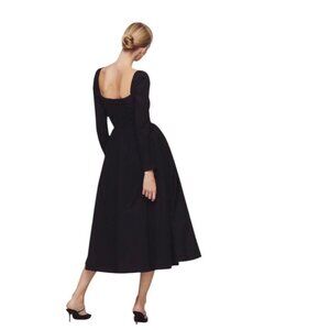 Reformation Elly Dress Black Size 0 Long Sleeve Midi Square Neck Cottagecore NEW