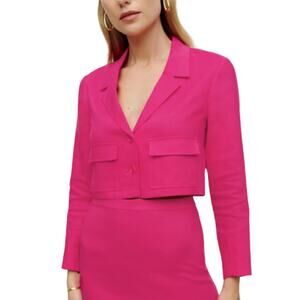 Reformation Elton Linen Blazer NEW Corvette Pink Cropped Button Jacket Size 6
