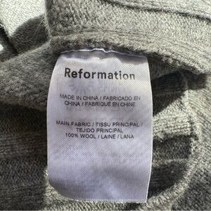 Reformation Elvezia Regenerative Wool Turtleneck Sweated Cropped Knit Grey Good preowned condition size large gray Pit to pit: 25 in Length: 18.5 in 100% Wool You're a softie. The elvezia is a slightly cropped, turtleneck sweater with a boxy silhouette and wide ribbed trim at the cuff and hemline. Long sleeve Crop reformation sweater, crop, cozy, winter, fall, ref, high neck, cowlneck, layer, layering